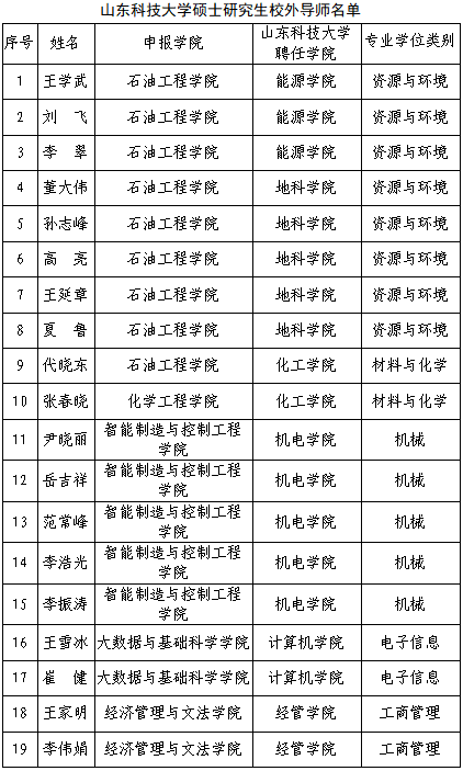 喜报:我校19名教师获聘山东科技大学硕士研究生校外导师